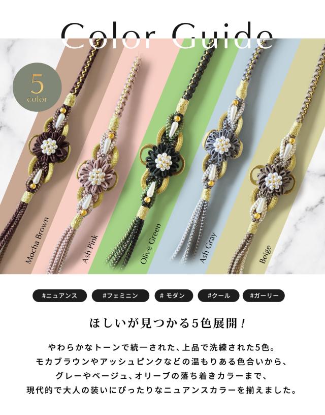 やわらかなトーンと上品な光沢が魅力の、「和のニュアンスカラー」帯締めコレクション。