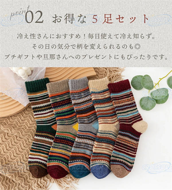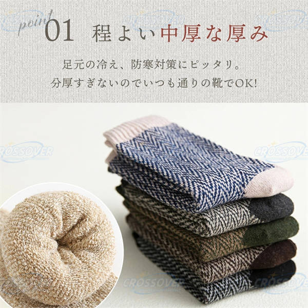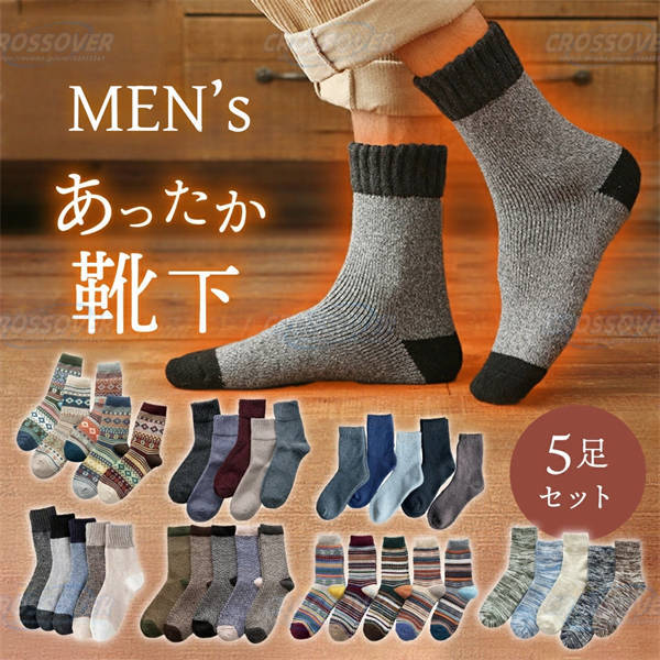 - 靴下メンズ冬暖かい厚手5足セット