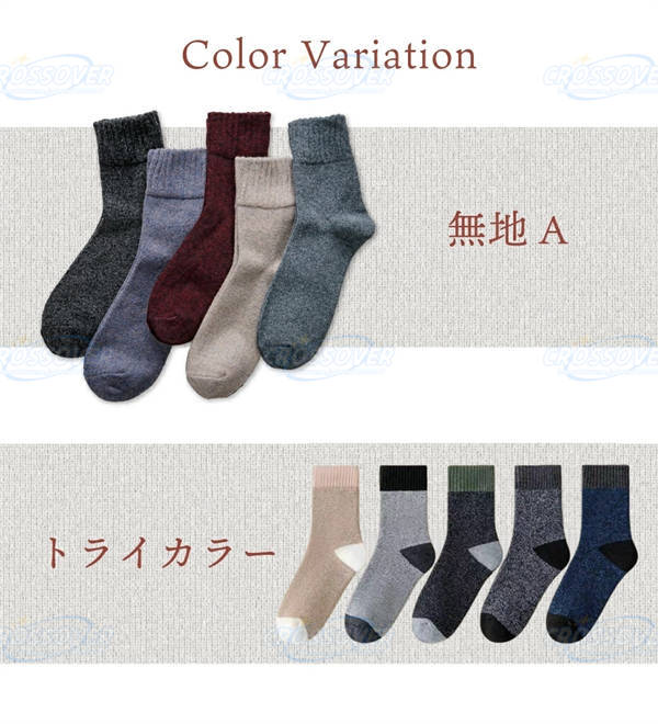 中厚で暖かいクルー丈メンズソックス 5足セット