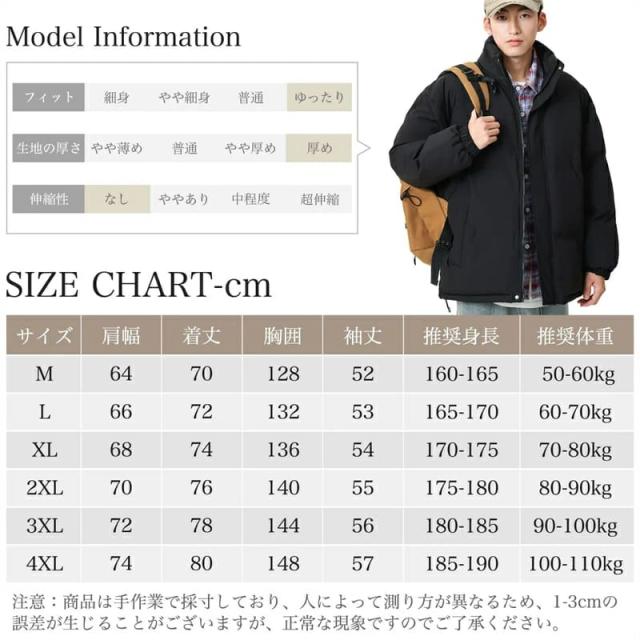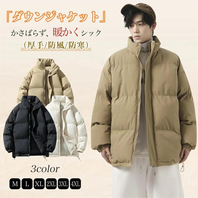 【秋冬服爆売れ中!】ダウンジャケット メンズ 中綿ジャケット 大きさインズ 50-110kg対応 春 アウター 男女兼用 冬春服 防風防寒 ブルゾン 撥水 厚手 暖かい ダウン ジャケット アウトドア フードなし 無地 シンプル 普段着 通勤通学 秋冬
