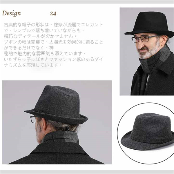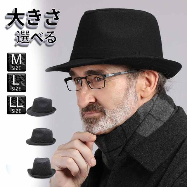 中折れ帽子 帽子 メンズ ウール 黒 フェルト ハット折れハット BIGサイズ 秋冬 ファッション ハット フェルトハット ウールハット 紳士帽子