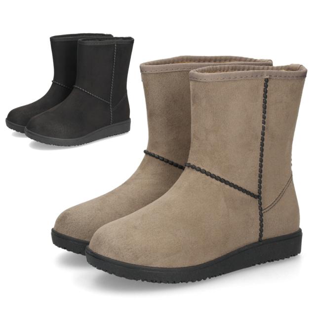 完全防水 ムートンブーツ レディース 防寒 スエード調 靴 ショートブーツ あったか 冬 雪 雨 神戸フクセン FKR1068 ブラック 黒 オーク