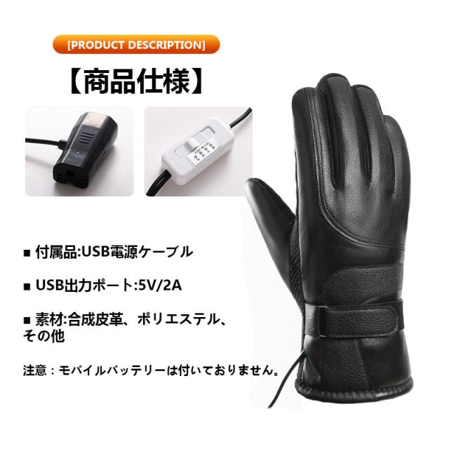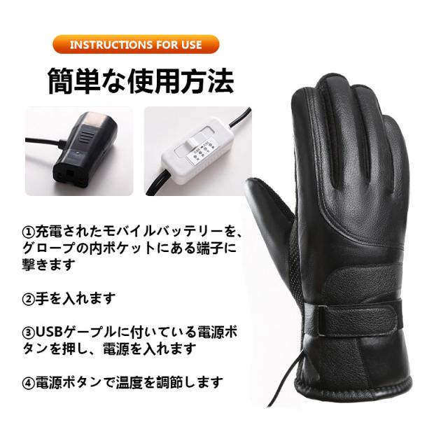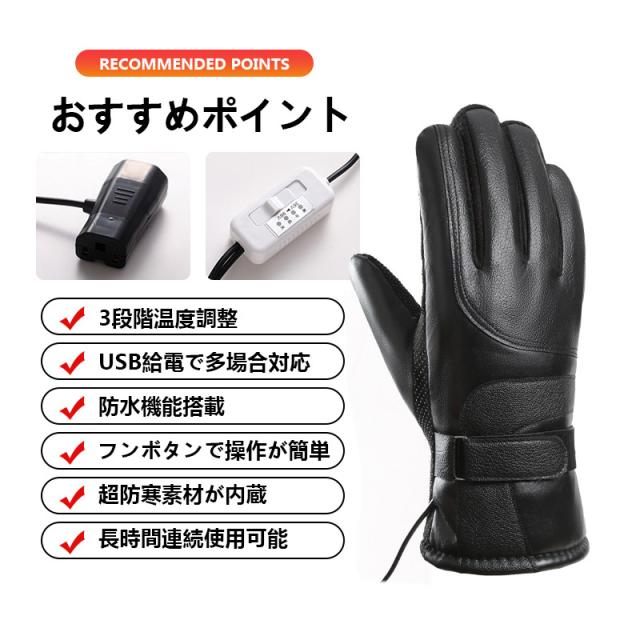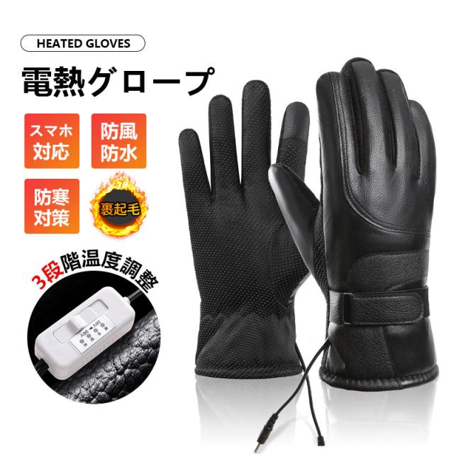 電熱グローブ 手袋 USB給電式 ヒーターグローブ 3段階温度調整 裏起毛 裏ボア 防水 防寒対策 防風 冬 スマホ対応 バイク 釣り 滑り止め