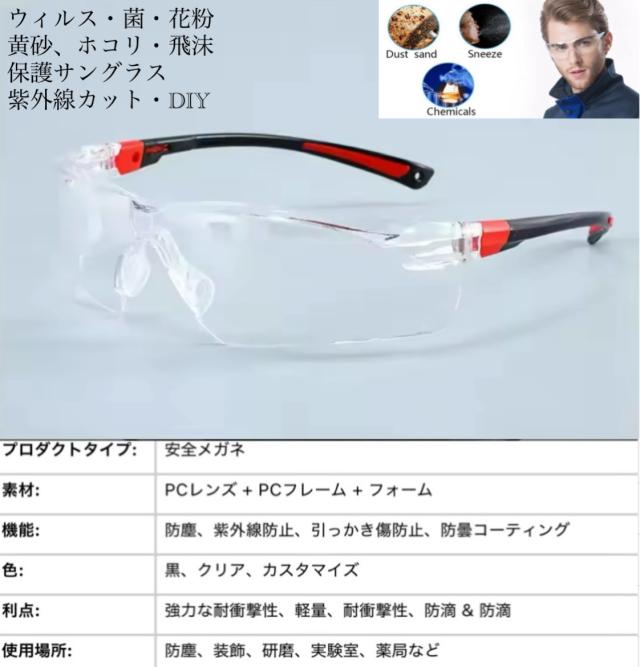 1 スポーツサングラス メガネ 医療用メガネ DIY 安全ゴーグル 花粉症 防塵 防風 耐衝撃 作業用メガネ 保護メガネ 男女兼用 透明レンズ ウィルス対策