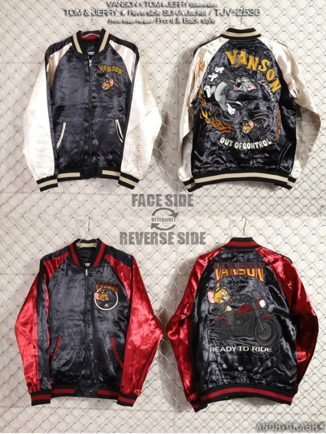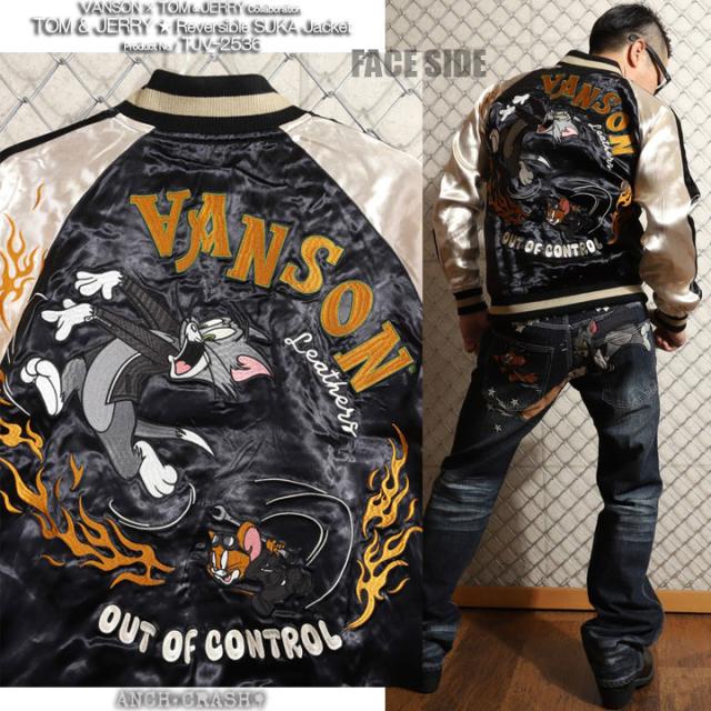 VANSON トムとジェリー コラボ リバーシブルスカジャン (TJV-2536) 【送料無料】バンソン TOM AND JERRY 刺繍