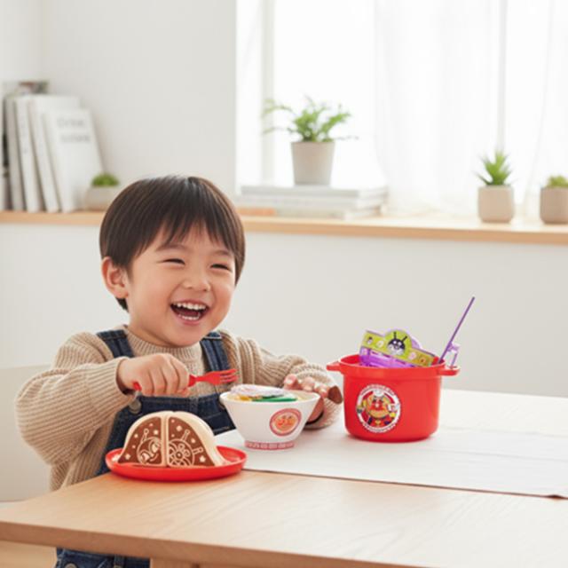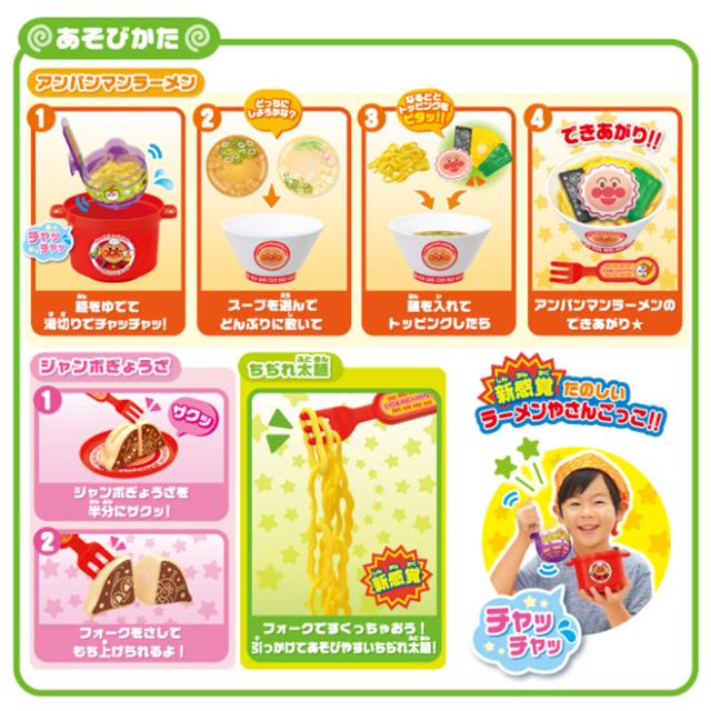 店員さん役もお客さん役もできて、ひとりではもちろん、お友達や家族ともいっしょに楽しめるラーメンセットです!