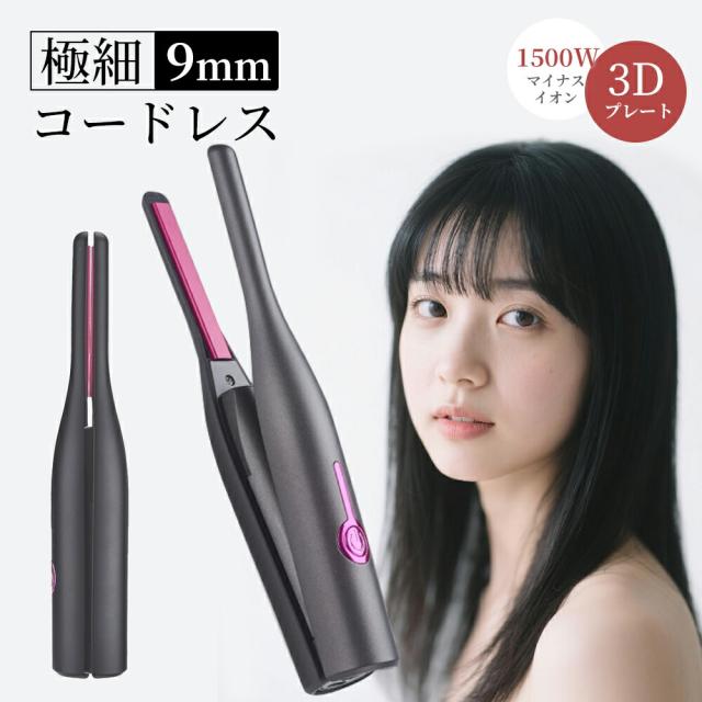 【クーポン配布中】「即納」ヘアアイロン ミニ メンズ ヘアアイロン ストレート パーマ両用 ヘアアイロン 2WAY スリムプレート 幅9mm コードレス ヘアアイロン USB充電式 収納袋付 マイナスイオン搭載 3段階温度調整 携帯便利 家庭 男女兼用 プレゼント