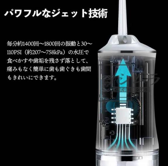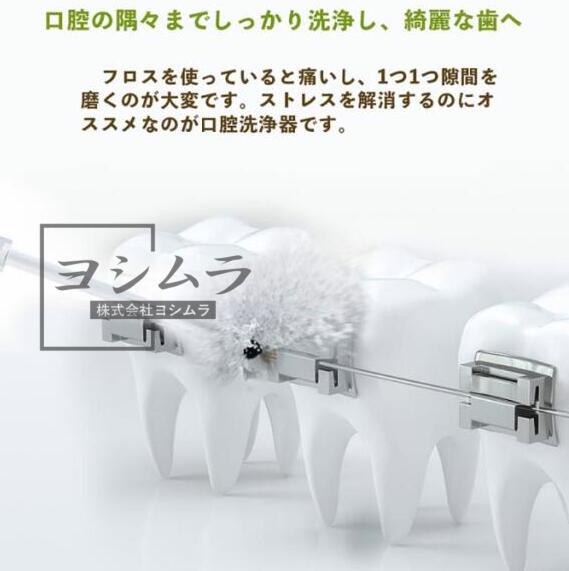 セットには標準ノズル、タングクリーナー、4本ノズルが付属されています。ジェット水流で日常の届きにくい歯周ポケット、歯並びの悪い所、矯正器具の周りなどの汚れをすっきり洗浄でき、予防することもできます。