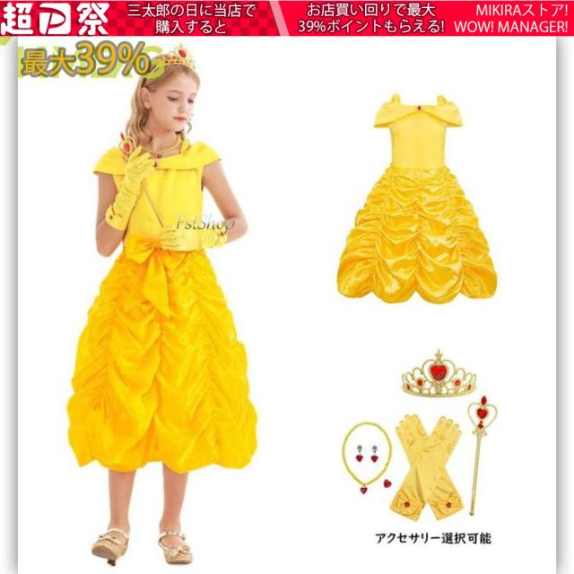 プリンセスドレス ハロウィン コスプレ衣装ワンピース フォーマルドレス キッズドレス子供ドレス パーティードレス ピアノ発表会ロングドレス イエロー 子供服 ワンピース 舞台演出服ジュニア ロングドレス結婚式 演奏会ガール 女の子ガールズ 子ども学園祭アクセサリー