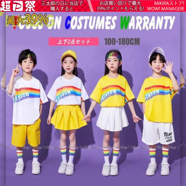 子供用 キッズ ジュニア 女の子 男の子 上下2点セット Tシャツ+スカート/短パンツ 団体服 運動会 練習着 スポーツ クラス 体育祭 サークル 幼稚園 保育園 卒業式 チアリーダー ステージ 合唱 舞台 ダンス衣装 ジャズダンス ヒップホップ ポッピング 演出服 応援団 hiphop