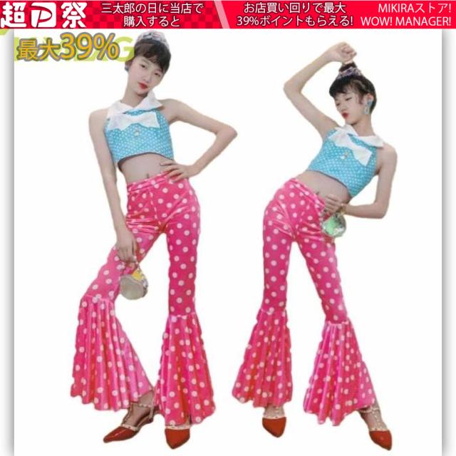 キッズ ダンス衣装 女の子 ヒップホップ レトロ 香港スタイル ダンスウェア おしゃれ ドット柄ベスト ラッパパンツ キッズ ダンス 新品 舞台 団体服 演出服 hiphop K-pop ステージ衣装 jazz かわいい ファッションショー トップス ボトムス 110 120 130 140 150 160 170
