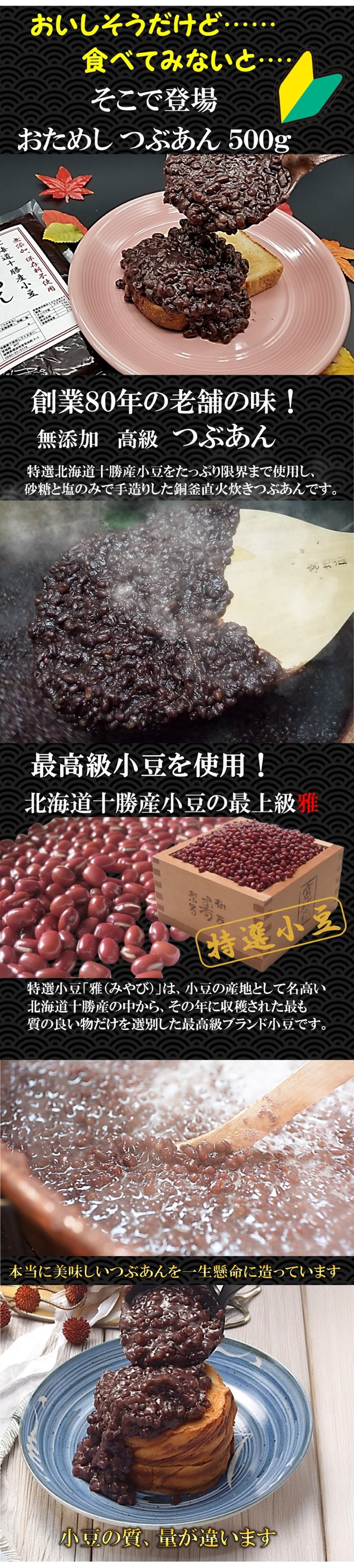 おためし 高級 つぶあん 500g 北海道十勝産小豆 雅 特選小豆 無添加 宮地嶽神社 名物 松ケ枝餅のあんこ 手造り あんこ 餡子 アンコ 粒餡 ツブアン ぜんざい お汁粉 和菓子 スイーツ 菓子製材 製パン材料 お菓子作り ネコポス