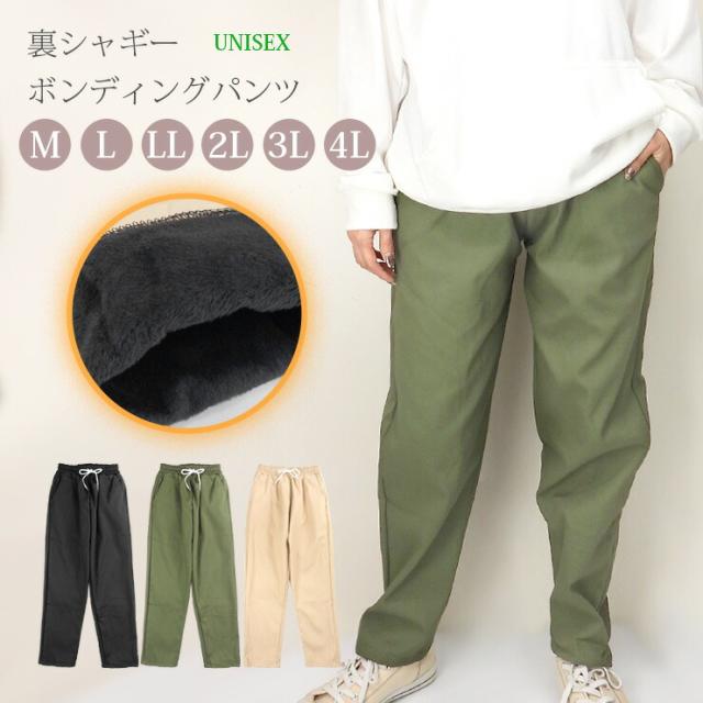 裏シャギー ボンディングパンツ S M L LL 2L 3L 4L 全3色 秋冬 28006 メンズ レディース ユニセックス ロングパンツ チノパンツ 長ズボン 裏ボア 無地 ブラック カーキ ベージュ 黒 緑 グリーン【大きいサイズあり】3033