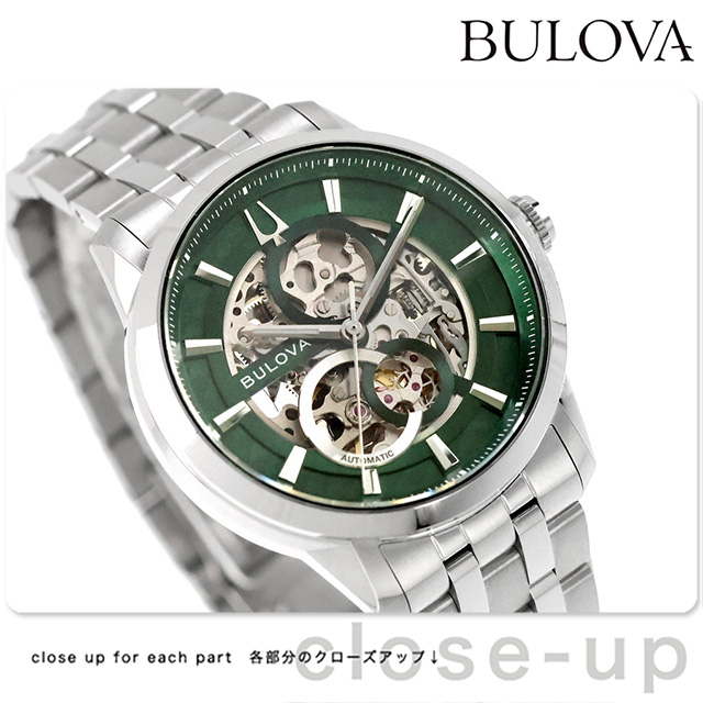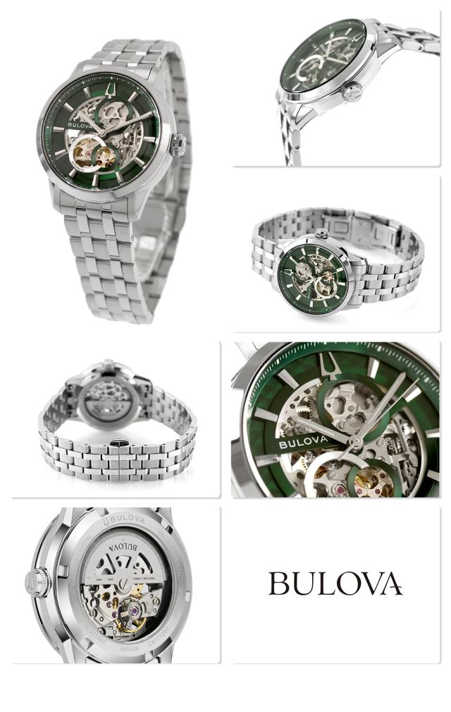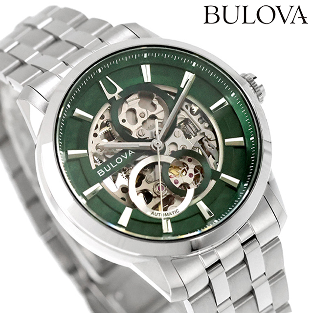 【ショッパー付】 ブローバ クラシック メカニカル 自動巻き 腕時計 ブランド メンズ オープンハート BULOVA 96A329 アナログ グリーン おしゃれ 防水 プレゼント 男性 実用的