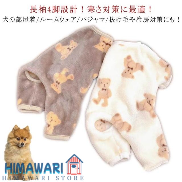 ロンパース 防寒 洋服 小中型犬服 秋冬 暖かい ソフトパジャマ 熊柄 暖かい つなぎ カバーオール 小中型犬服 4脚ロンパース ペット服ペットウェア つなぎ ルームウェア 抜け毛防止 着せやすい 伸縮素材 着脱簡単