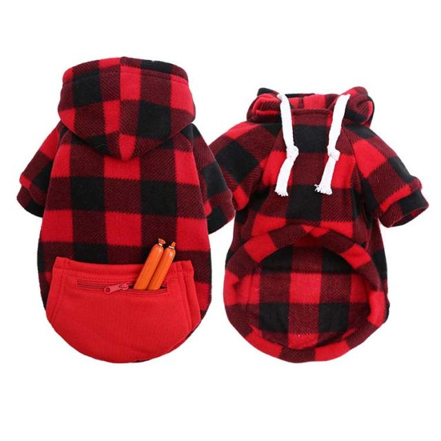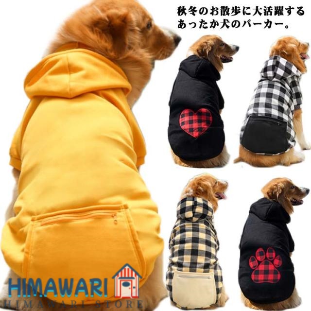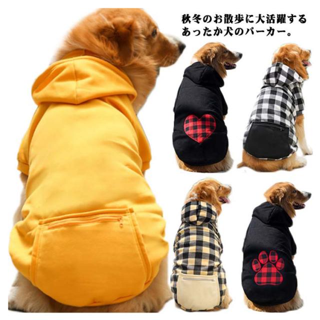 ペットウェア 秋冬 犬服 大型犬 パーカー 裏起毛 チェック柄 ポケット付き 大型犬 送料無料 無地 小型犬 中型犬 服 フリース 猫 ペットウェア かわいい おしゃれ あたっか 防寒 犬用上着 防寒 防風 ペット服