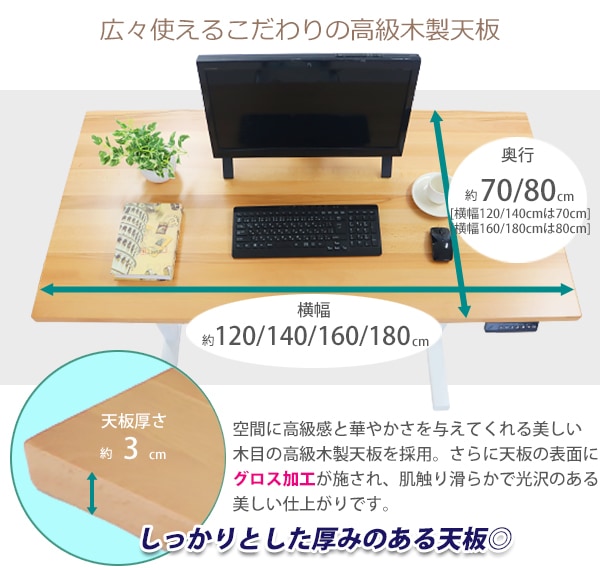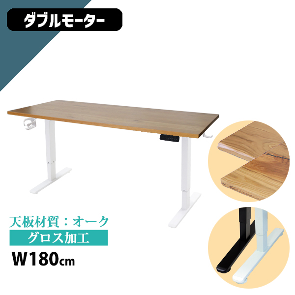 昇降デスク 電動 ハイグレードモデル PSE適合 180cm 1800mm オーク材 高級 木製 天板 グロス加工 動荷重約100kg 静荷重約180kg スタンディングデスク 上下昇降 デスク 高さ調整 昇降式デスク 昇降テーブル 電動デスク ダブルモーター オフィス a99hg