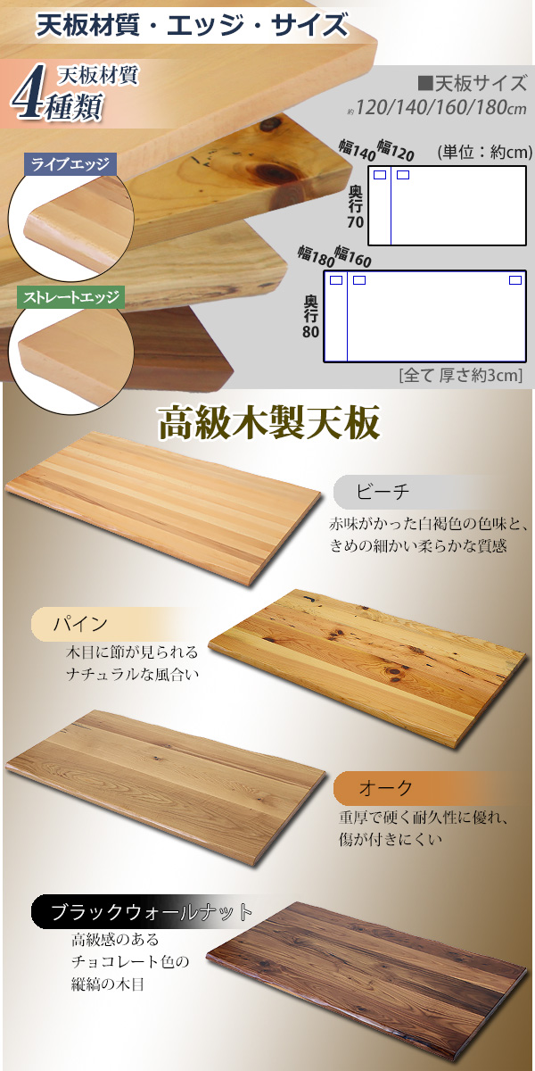 | 天板寸法 | [天板180cm]約W 180×約D 80×約H 3(cm) |