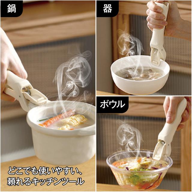 火傷から手を守る:器を直接触らずに安全キャッチ。
