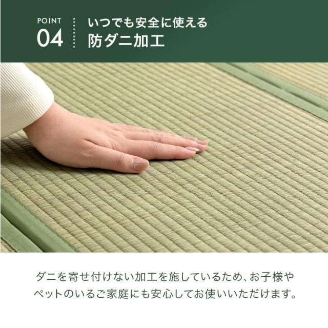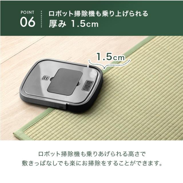 天然のい草を使用しているため1つ1つ色味・形状・サイズが異なる場合がございます。また厚みについては加工の関係上、端と中央で2~3mmの差が生じる場合がございます。あらかじめご了承ください。