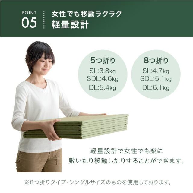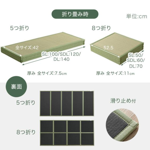 サッと敷くだけ 天然い草 畳マット 5つ折り シングル い草マット マットレス 畳 マット 置き畳 い草ラグ 折りたたみ い草 たたみ コンパクト 抗菌 防臭 防カビ 調湿 湿気 対策 滑り止め 折り畳み 床暖房対応