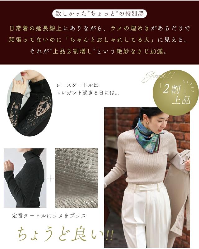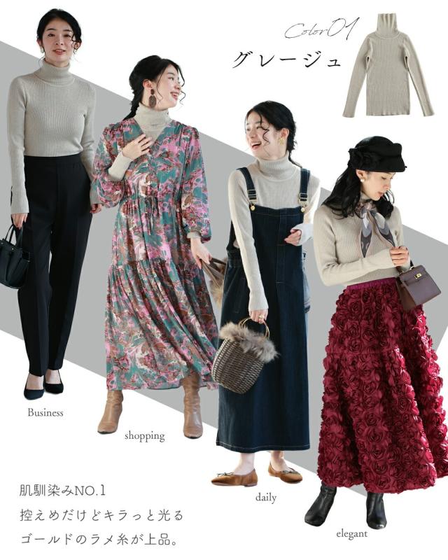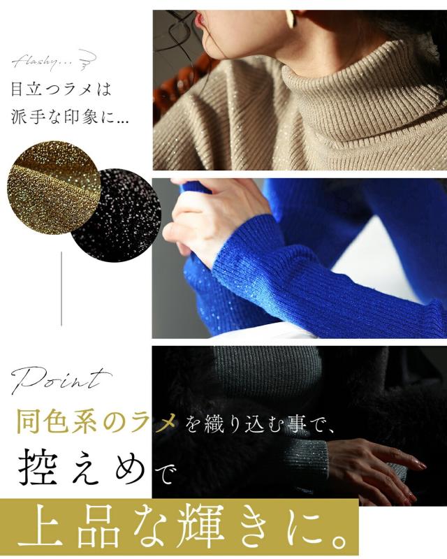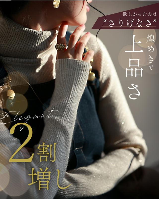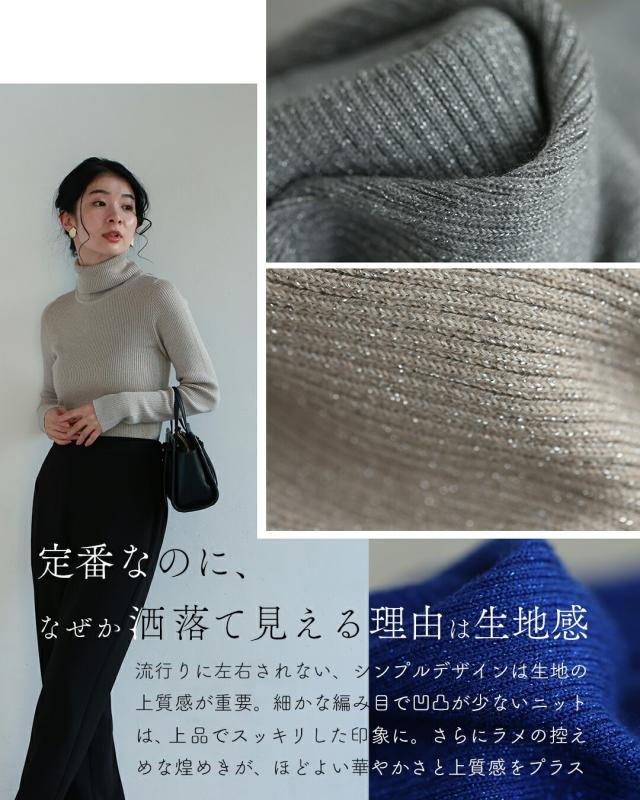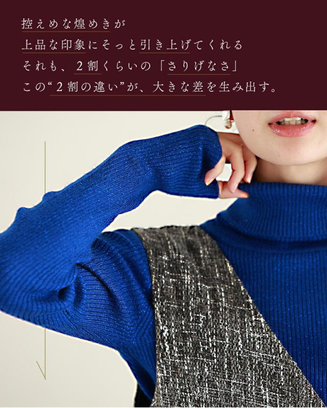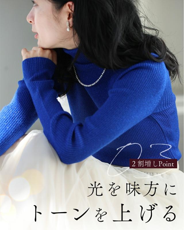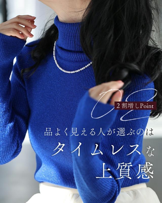 新作10月24日 上品2割増し ラメニット cawaii fzp00255od S~L対応 長袖 タートルネック 伸縮 グレージュ グレー ロイヤルブルー オシャレ 個性的 大人可愛い エレガント 上品 春 秋服 冬服 冬物 着回し レディース ファッション ミセス 30代 40代 50代