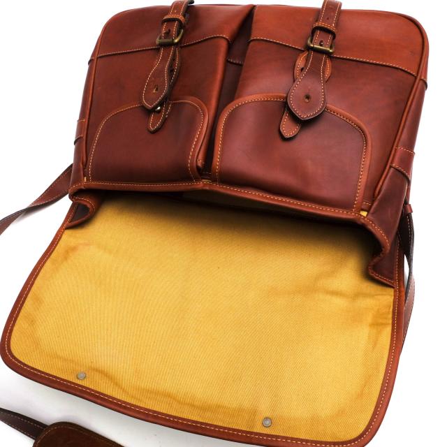 スカンジナビア半島で生産された最上級のカーフレザー、アトランティックレザーを使用したショルダーバッグ。滑らかな質感と鮮やかな光沢が特徴的で、リッチな深みと豊かな表情を持つ本革です。内部は実用的なコットンライニングが施されており、外側には便利なポケットが2つ、内側には1つ設けられています。デザインは伝統的なフッシングバッグを彷彿とさせるメッセンジャータイプで、耐久性と機能性を兼ね備えたバッグは、日常使いからビジネスシーンまで幅広く対応します。