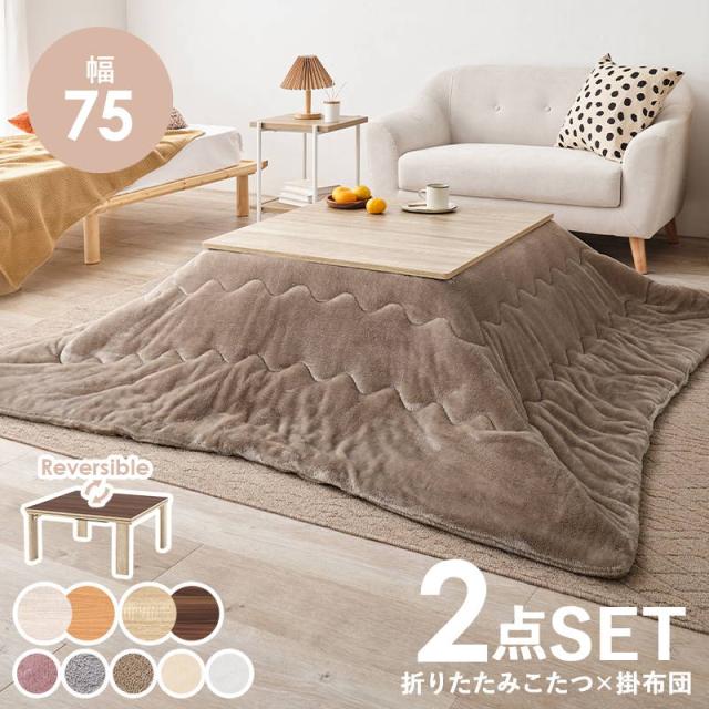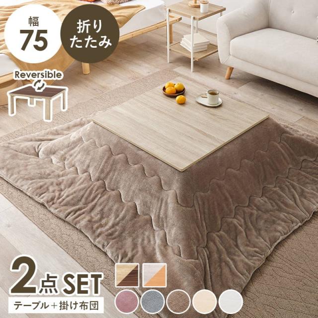 こたつセット 正方形 75x75cm 1人用 折りたたみ リバーシブル天板 洗える フランネル生地 こたつ布団 2点セット