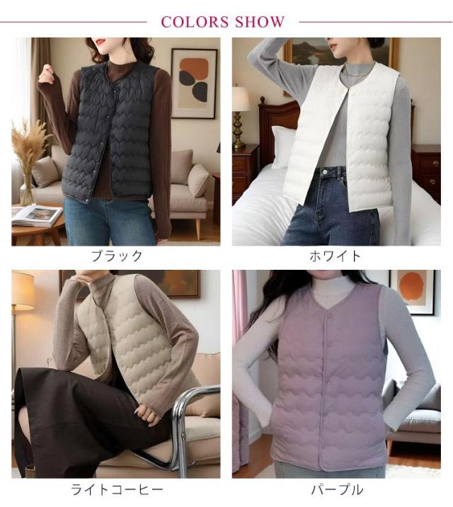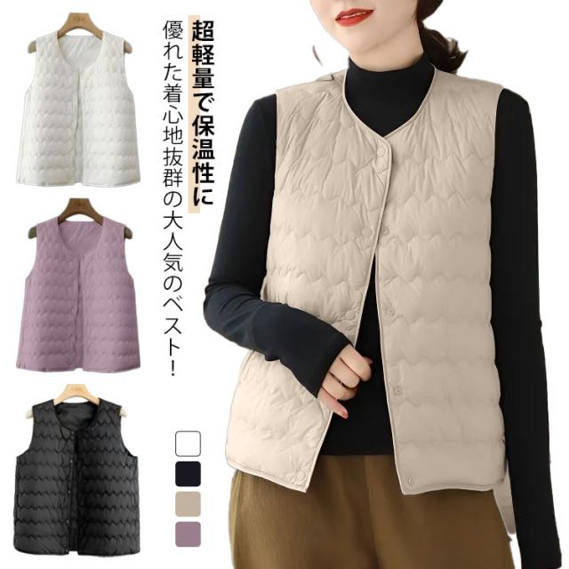 中綿キルト レディース トップス 保温 キルティングベスト 暖かい インナーベスト 中綿キルト 冬 キルティング アウター 防寒 ベスト 冷え取り 羽織り 前開き あったか 秋 秋冬 ライトダウン 中綿 防寒 暖かい