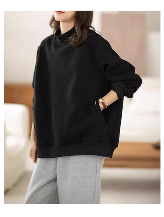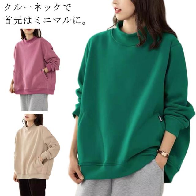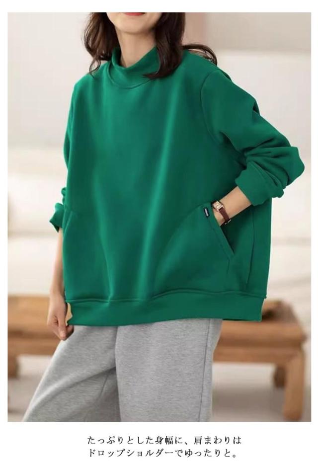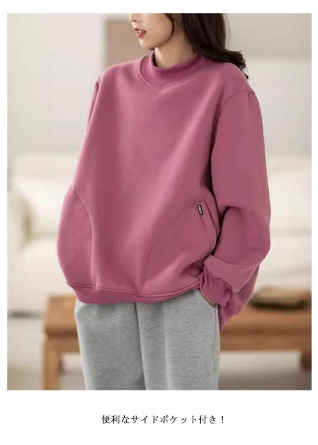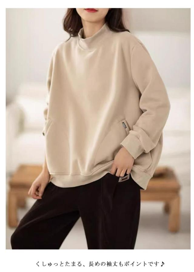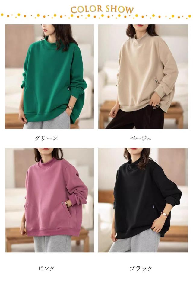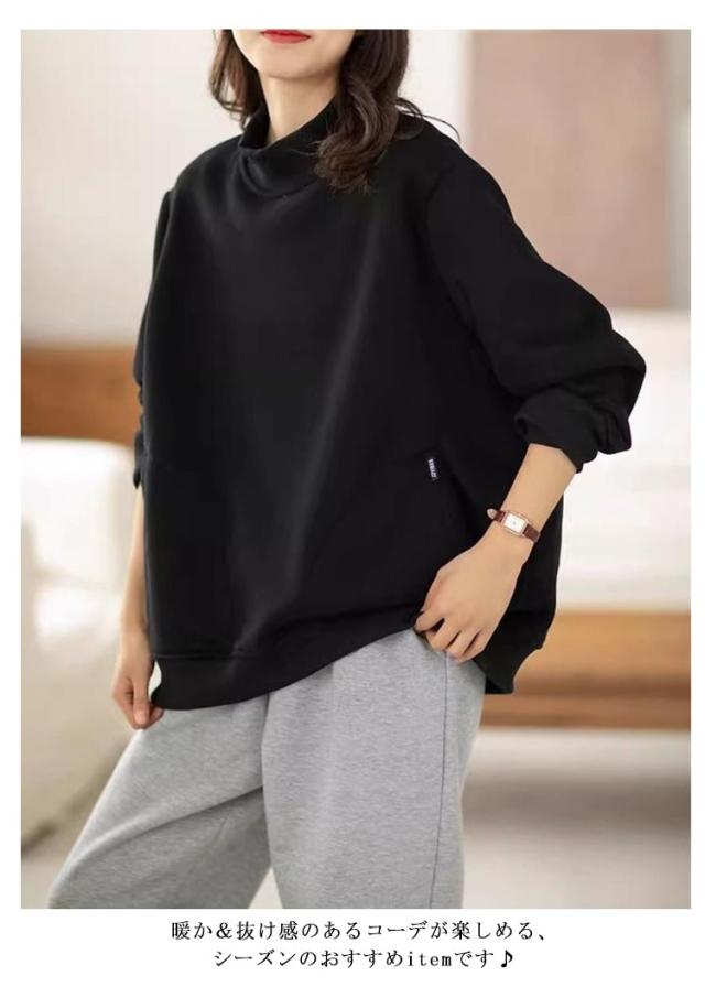 楽ちん オーバーサイズ レディース スウェットトップス トップス 長袖Tシャツ ロンT スウェット カットソー スウェットカーディガン トレーナー ハーフタートルネック 裏起毛 体型カバー ゆったり 裏起毛 ボリューム袖