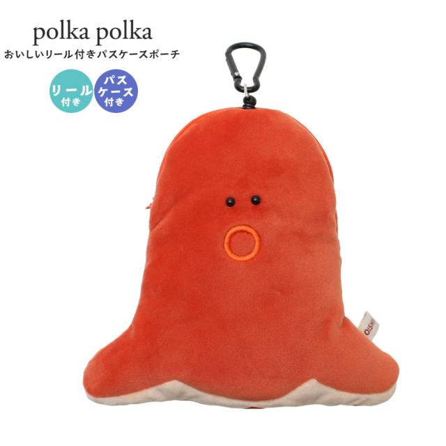 polka polka おいしいリール付きパスケースポーチ レディースポーチ カジュアル 小物入れ リール付き パスケース 通勤 通学 バッグチャーム タコウインナー タマゴ寿司 ポリエステル ギフト プレゼント かわいい ユニーク ファスナーポーチ 収納便利 ワイヤレスイヤホン対応 おしゃれ