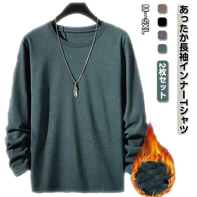 ロングスリーブTシャツ 秋冬 メンズ 重ね着 ロンT 柔らかい シンプル 無地 クルーネック ロングスリーブTシャツ tシャツ 2枚セット インナー あたたか 厚手 長袖 ティーシャツ 大きいサイズ 秋服