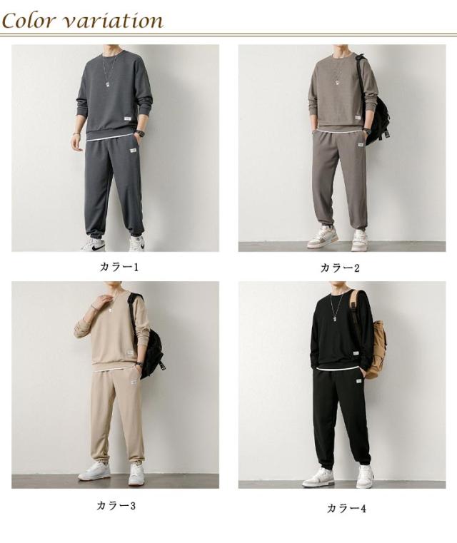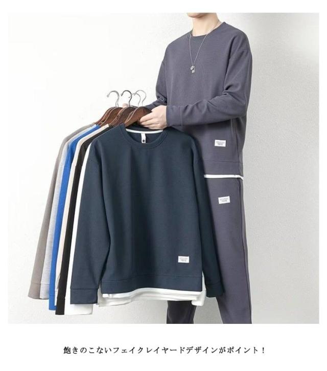 部屋着ア イージーパンツ ルームウェアー スウェット メンズ 上下 春秋 レイヤード風 トレーナー トップス スエット スウェットパンツ ジョガーパンツ セットアップ スウェット 上下 ジャージ ジャージ ジャージ 通勤 通学 春服 秋