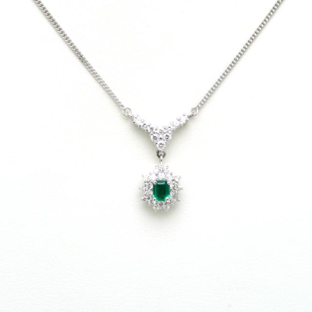 【楠本質店/元住吉】Pt850 エメラルド&ダイヤ ネックレス エメラルド0.28ct/ダイヤ0.48ct【中古】