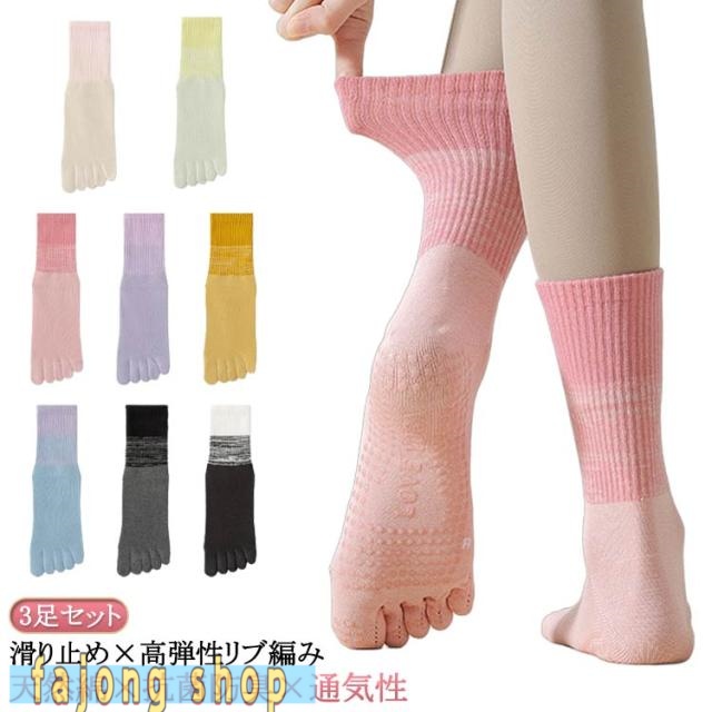 グリップソックス ヨガ靴下 ヨガソックス ピラティスソックス 【3足セット】 5本指 汗対策 滑り止め ピラティス おしゃれ ロング ヨガ つま先 靴下 【3足セット】 スポーツ ダンス 滑り止め靴下 保温 防寒対策 暖か 冷房対策 レディース くつした ヨガウェア ヨガ