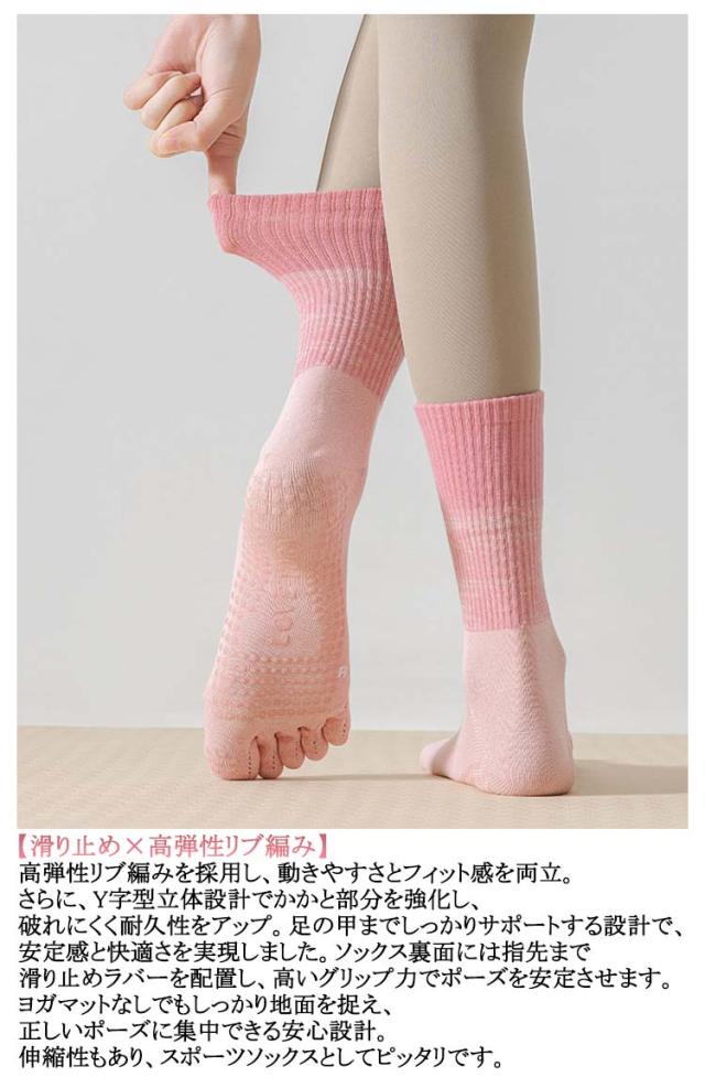 グリップソックス ヨガ靴下 ヨガソックス ピラティスソックス 5本指 汗対策 滑り止め ピラティス おしゃれ ロング ヨガ つま先 靴下 スポーツ ダンス 滑り止め靴下 保温 防寒対策 暖か 冷房対策 レディース くつした ヨガウェア ヨガ