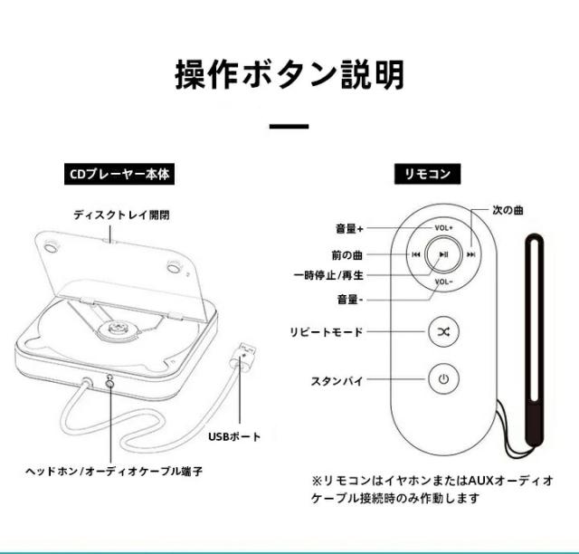 cdプレーヤー bluetooth ポータブル 安い cdウォークマン 音楽再生 車 で 聴ける cdプレーヤー ポータブルcd カーオーディオ bluetooth オーディオ 音楽 多機能CD/USB/Bluetooth/AUXなどに対応 A-Bリピート再生 CDウォークマン コンパクト 3.5mmオーディオジャック搭載