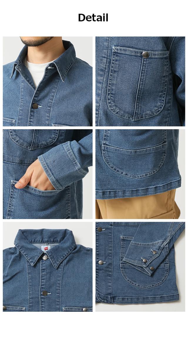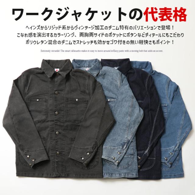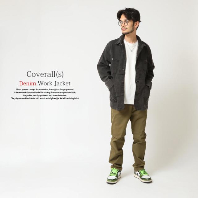 デニムカバーオール ヘインズ Hanes デニムジャケット メンズ ワークジャケット ストレッチデニム メンズ 新作 ブランド ヘインズ おしゃれ 秋物 秋服 デニムアウター ブルゾン