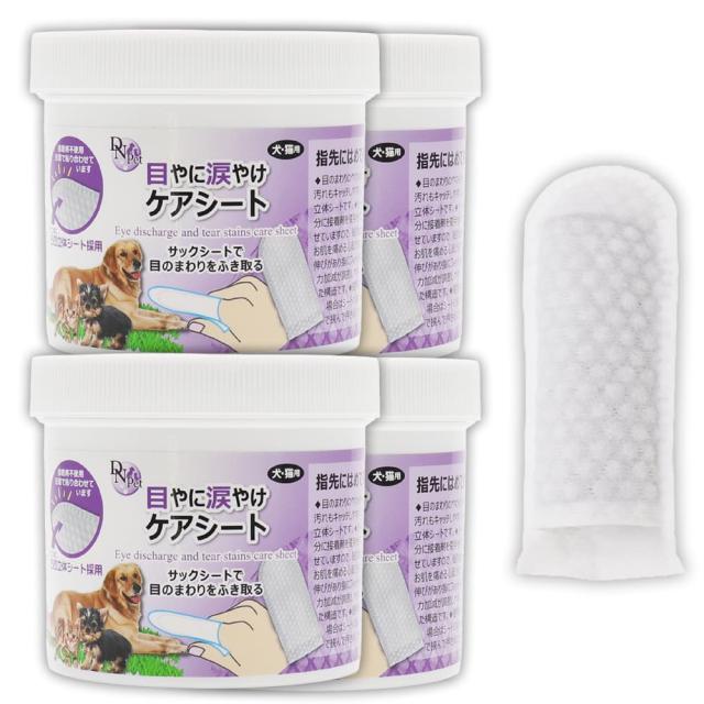 犬・猫用 目やに 涙やけ ケアシート 320枚(80枚入 ×4個) 指サック 大容量 接着剤不使用 立体シート