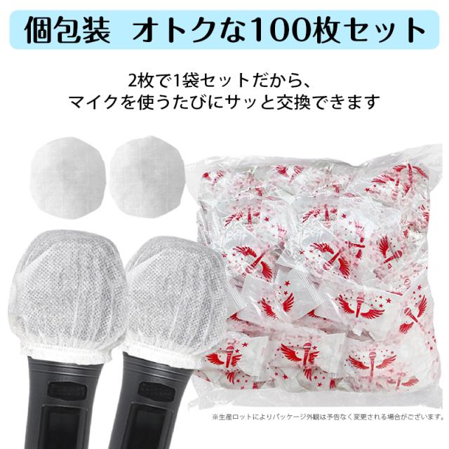 マイクカバー 使い捨て 100枚 セット カラオケ 不織布 黒 ブラック 個包装 飛沫防止 ウイルス対策 感染予防 衛生 清潔 安心 風防 雑音防止 イベント 講演 会議