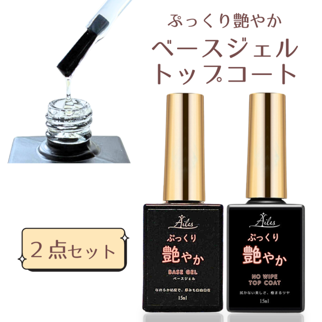 【新発売記念価格】【送料無料】ベースジェル トップコート ジェルネイル ベース トップ 15ml 2点セット ポリッシュタイプ セルフネイル Ailes エール