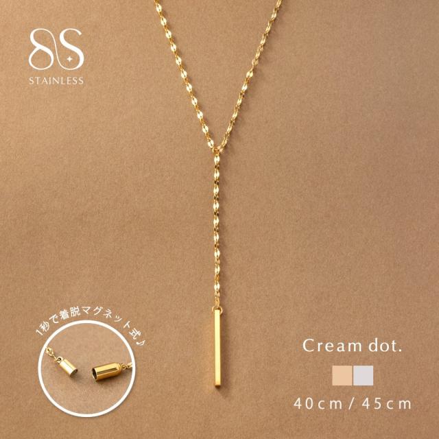 メタルバーとペタルチェーンのステンレス製マグネットネックレス。パチッと1秒で留まり着脱も簡単♪Y字のシルエットがコーデにアクセントをプラス◎デコルテに沿う40cmと合わせやすい45cmからお選び頂けます。