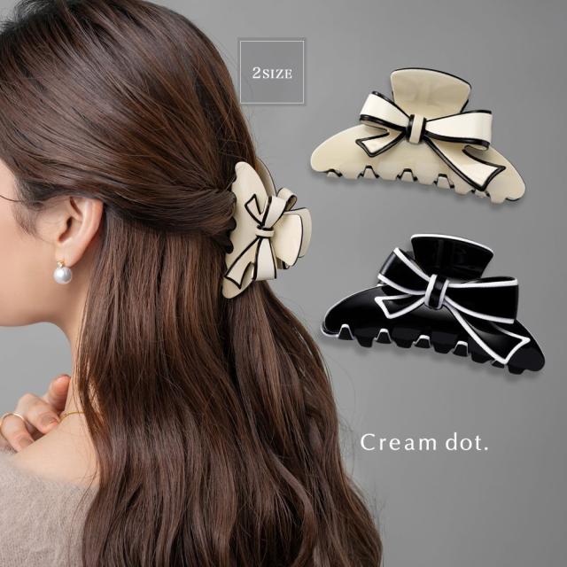 【定形外郵便送料無料】 バンスクリップ ヘアクリップ リボン アシンメトリー バイカラー 艶 2サイズ パイピング ヘアアクセ ヘアアレンジ 簡単 まとめ髪 髪留め しっかり留まる 大人 ブラック アイボリー