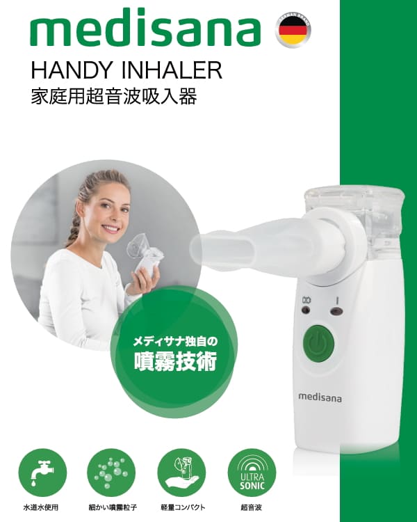 メディサナ 家庭用超音波吸入器 吸入器 治療機器 市販 家庭用 超音波 水 加湿器 ミスト 風邪対策 鼻 喉 のど 加湿 乾燥 対策 乾燥対策 不快感 リフレッシュ ハンディ 家庭用吸入器 グッズ おすすめ 人気 通販 販売