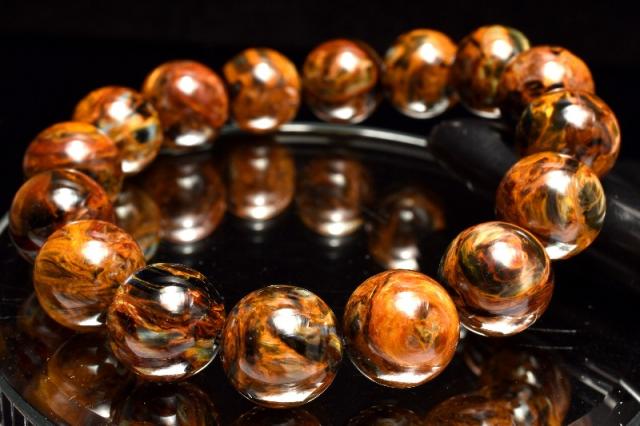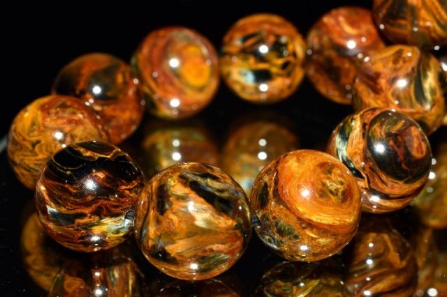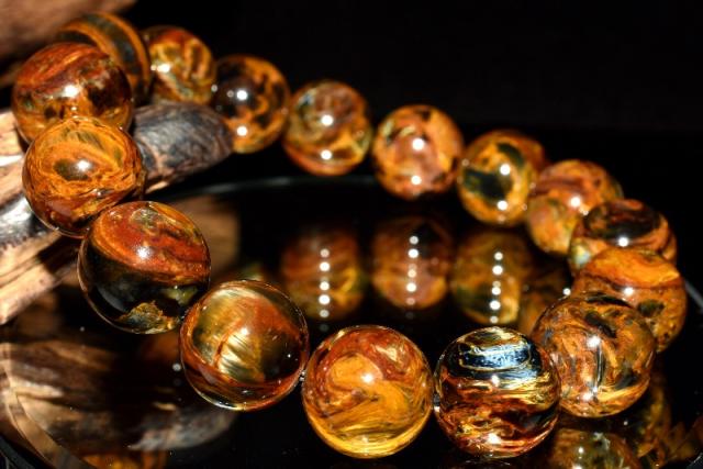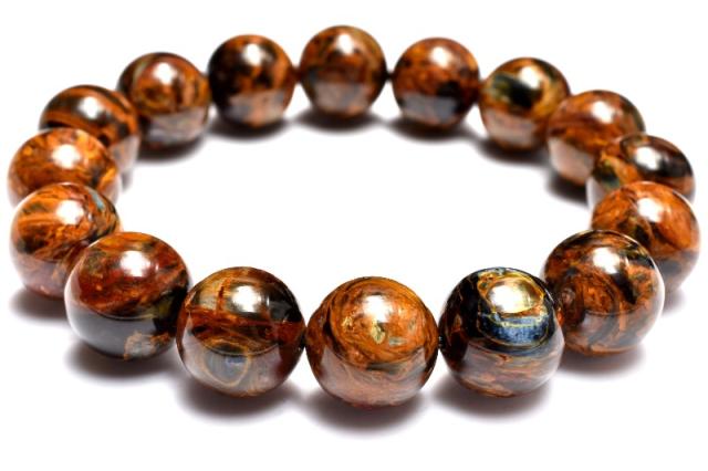 | 特徴・意味 | 幻想的なシャトヤンシーがとても美しいです。 1粒1粒異なったマーブル模様がなんとも美しく上質です。 タイガーアイとはまた違うベルベットな雰囲気を彷彿させる上品さがあり、見る人を惹き付けます。 1962年、南アフリカのナミビアで、シッド・ピータースによって発見された新しい石。 タイガーアイやブルータイガーアイが地殻変動で崩れた後、再度石英で固まったものです。 一般的にはタイガーアイ系の茶褐色が多いですが、ブルータイガーの青系もあり、茶と青の混じったものもあります。 独特の粉々になった模様が嵐のようだというので、テンペストストーン(嵐の石)とも呼ばれます。 タイガーアイは、石英(せきえい)の中に、青い石綿が入ったもので、めのうの仲間です。 これが地熱で温まり、黄色になったのが、タイガーアイです。 ブルータイガーアイの一筋の光が、一度崩れたことによって、あちこちを向いて輝いていて、神秘的な感じになっています。 渋くて不思議なものが好きな方には、たまらないかも。 どこかのブランド物の織物のようです。 地殻や自然の激しい動きにさらされた石は、困難を切り抜ける知恵を持っています。 ピーターサイトは、めちゃくちゃになった物事を、再度作り上げ、昇華していこうとする人に、援助を惜しまない石です。 ブルータイガーアイよりも、さらに強いエネルギーを求めたい人におすすめ。 |