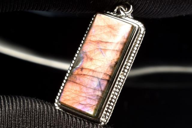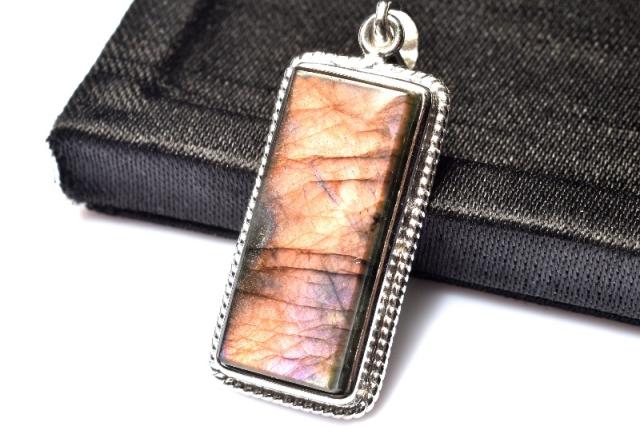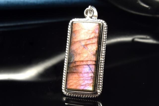 【1点物】シルバー925◇パープルシラー ラブラドライト 22x9mm レクタングル ペンダントトップ _PC6488