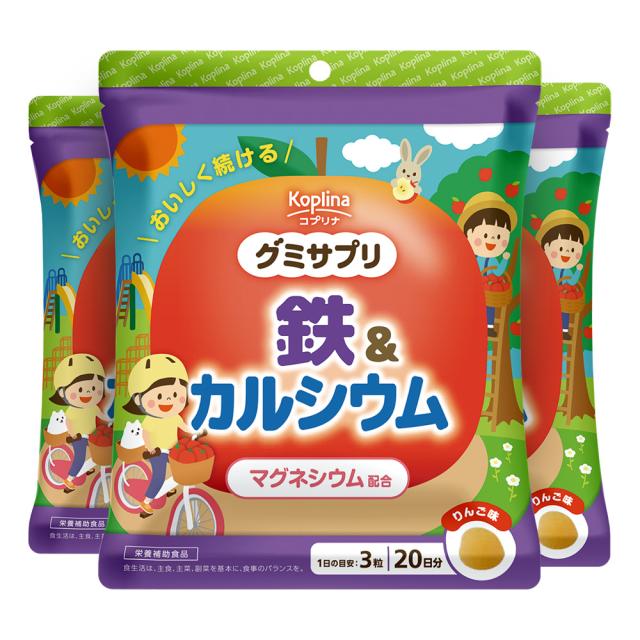 グミサプリ 鉄&カルシウム(りんご味) 60粒 3セット個60日分【グミ/果汁入り/おいしい/マルチミネラル/家族/子ども/健康/サプリ/サプリメント/栄養補助食品/安心国内製造/コプリナ】