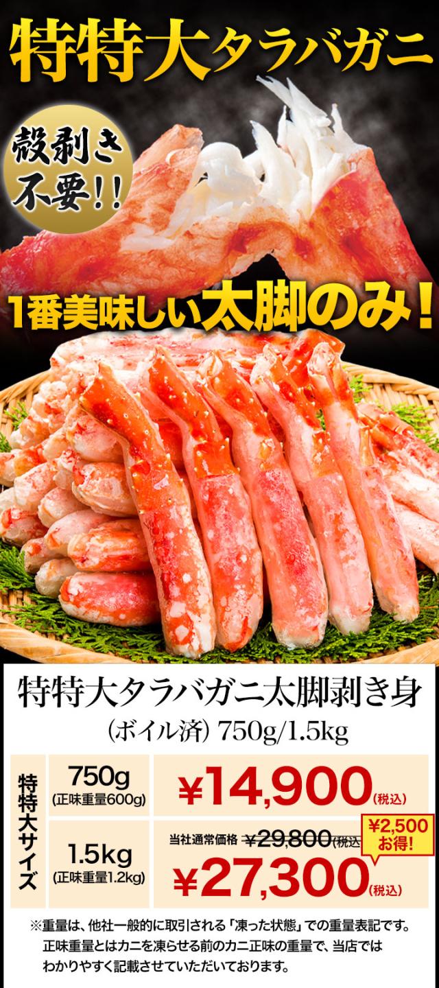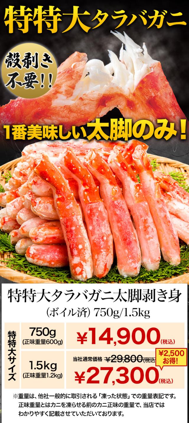 【お値引きクーポン配布中】1.5kg 特特大タラバガニ太脚部剥き身(ボイル済) たらば タラバ たらば蟹 タラバ蟹 特大たらばカット たらばがにカット済 タ全国送料無料