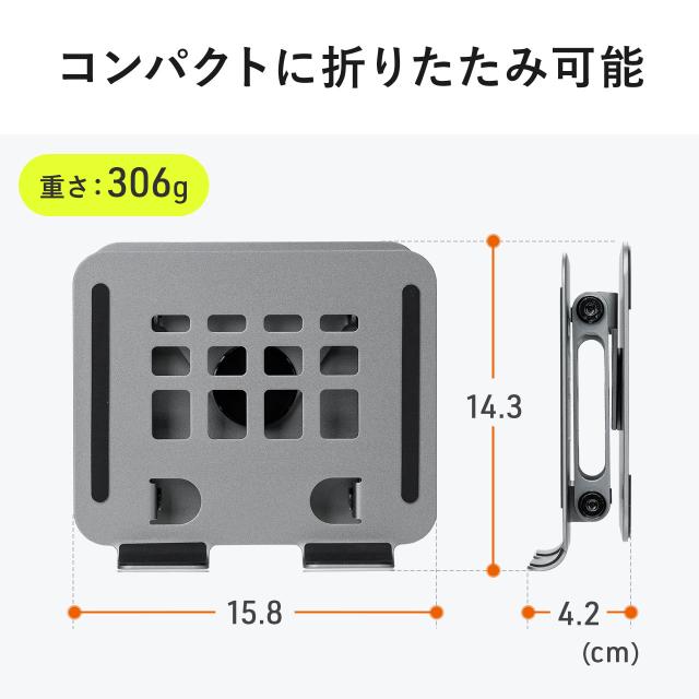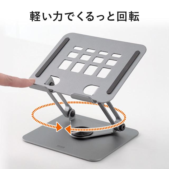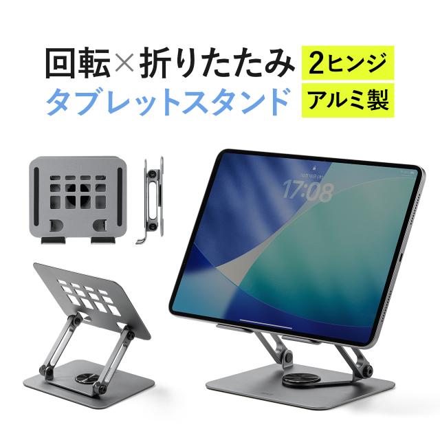 タブレットスタンド 回転 折りたたみ アルミ製 無段階 角度調整 2関節 スマートフォンスタンド Switch グレー[200-STN092GY]