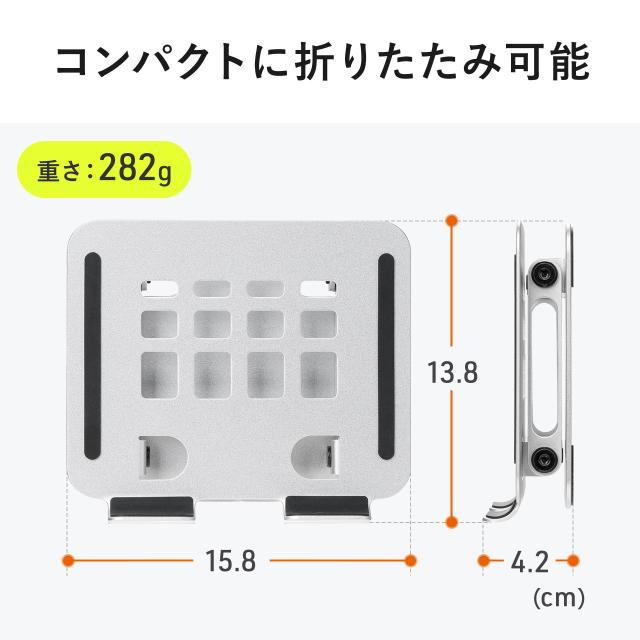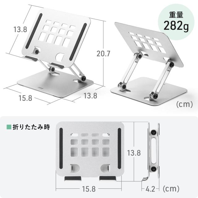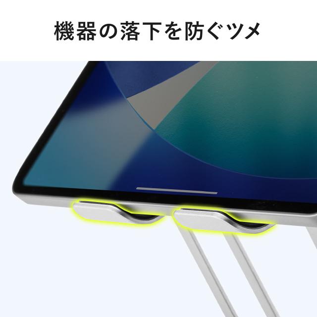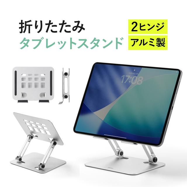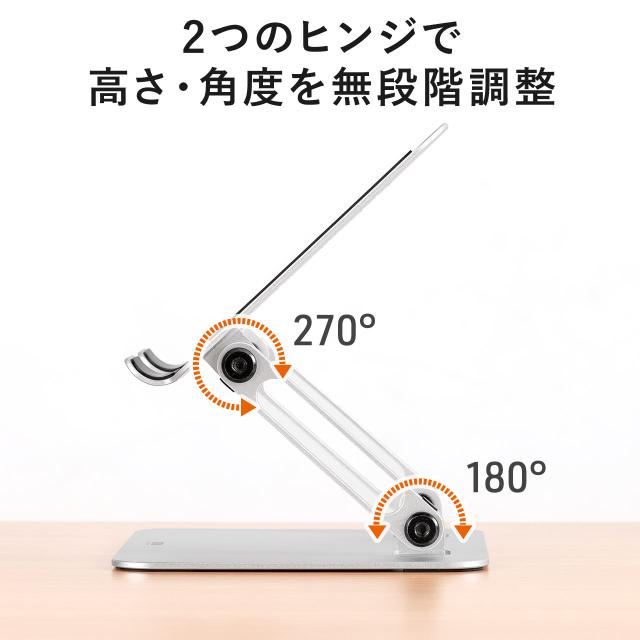 タブレットスタンド 折りたたみ アルミ製 無段階 角度調整 2関節 スマートフォンスタンド Switch シルバー[200-STN093S]